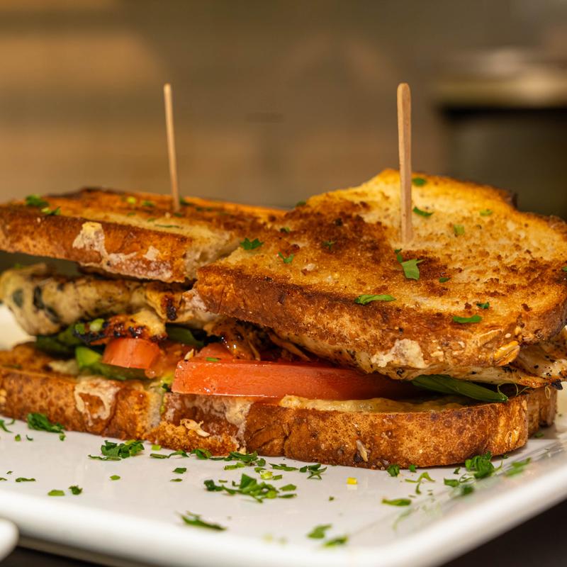 Grilled or blackened | Toasted plain brioche or multi-grain, shredded lettuce, tomato side, honey mustard