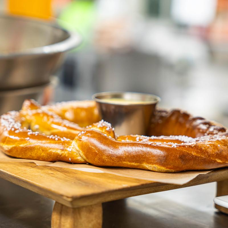 Oven baked with salt crust, stone mustard dip, side sharp ale cheese sauce